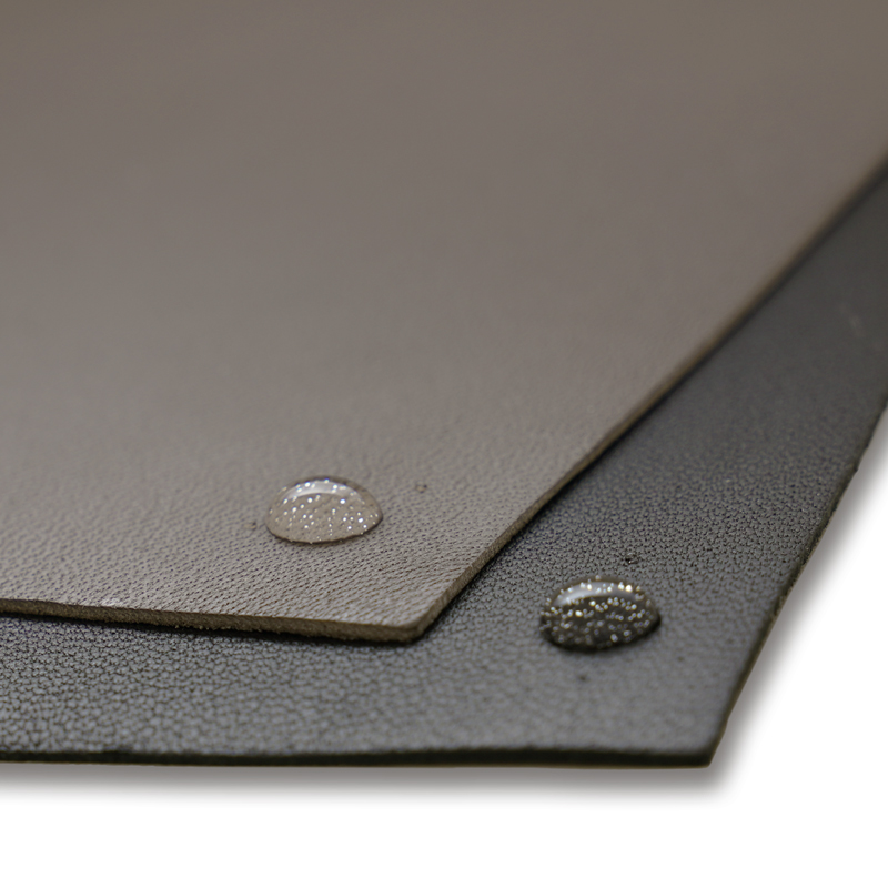 キメが細かく柔らかい、吸い付くような質感が特徴のラム革仕様。ブラック革 × テラコッタオレンジ/グレー革 × ロイヤルブルーの、ジッパーのアクセントカラーが印象的。引き手はラム革の柔らかさを生かし、スリムなスタイルに似合うデザインに仕上げました。
