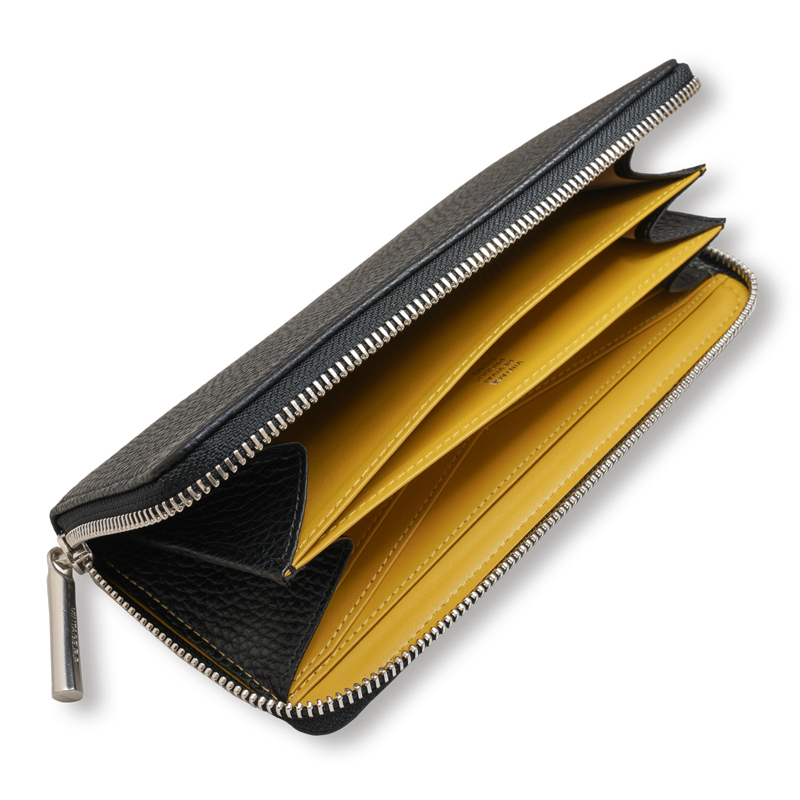 紙幣入れ2箇所・12のカード段を装備した、大容量かつスリムな長財布です。